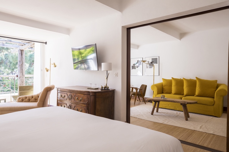 40 chambres de différentes catégories et superficies réparties sur deux étages sans ascenseur : chambres Standard (22 m²), Grand Confort Sud (30 m²), Junior Suites (35 à 50 m²), Suites (50 à 60 m²) et la Cabane (37 m², dans les arbres face à la mer sur pilotis). Toutes climatisées avec salle de bains, sèche-cheveux, WC, coffre-fort, minibar, télévision écran plat, téléphone, accès Wifi, balcon ou terrasse (sauf standard) avec vue pinède ou vue jardin.