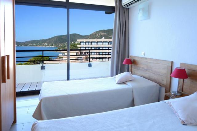 Appartement van 30 - 40m² (2 tot 4 personen): airco, woonkamer met 2-persoons bedbank (140cm), kitchenette (koelkast, vaatwasser, microgolf, elektrische kookplaten, koffiekan, waterkoker, broodrooster en servies), 1 geklimatiseerde slaapkamer (bed van 160cm), badkamer (bad of douche), WC, flatscreen televisie, gratis Wifi en ingericht balkon.