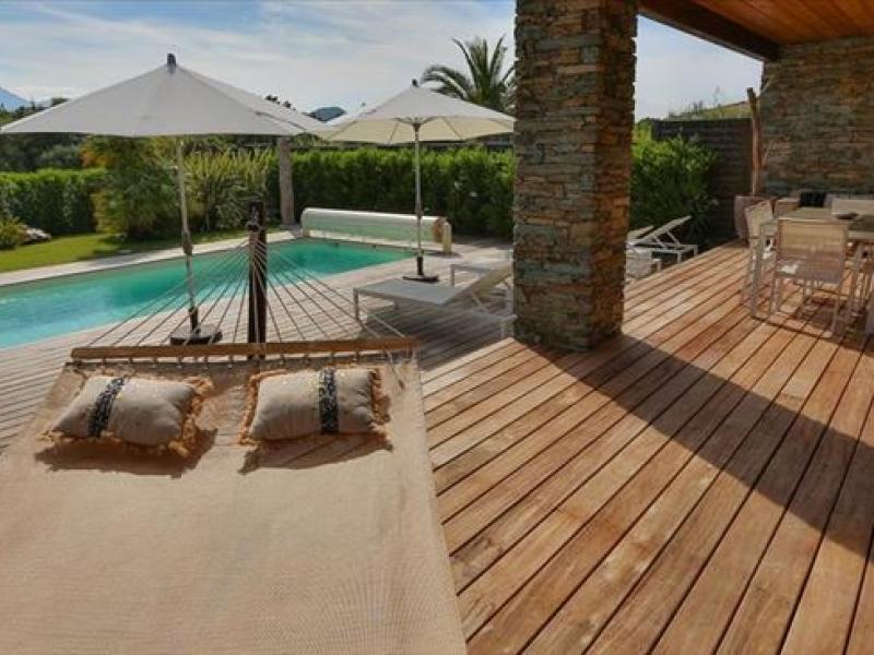Situation Au cœur d’un magnifique parc arboré et fleuri dans la campagne d’Oletta, à 4 kilomètres de Saint-Florent.